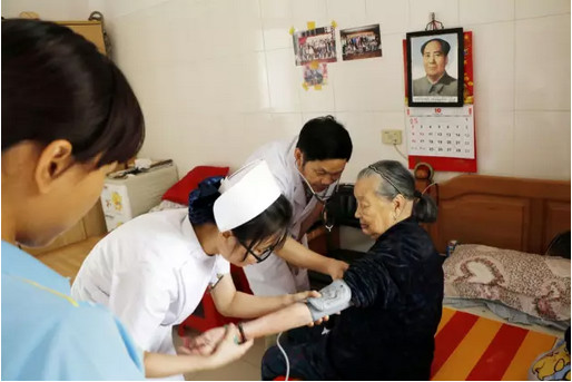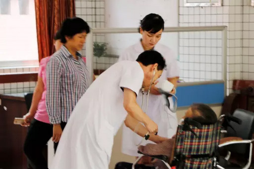 由急诊科副主任医师安建东带队的医疗小组,来到二楼为在院的8位老人逐一体检。测量完血压后,安主任对82岁高龄的林爱香老人亲切的说:“阿姨,你现在的血压指标偏高,一定要按时服用降压药物,把血压控制好。走动的时候要慢点,小心安全。另外你的小腿双脚这里有静脉曲张的症状,晚上睡的时候要把小腿脚下稍微垫高一些,这样对缓解症状很有益处。”当检查到一位老人有白内障病情时,安主任还请敬老院工作人员拿出老人平时用的眼药水,仔细查看并分析了老人的用药要点,教给工作人员一些护理方法。