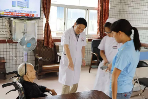 由永福医院院长何正在先生、外科副主任医师徐邦文先生分别带领一支医疗小组,为福永敬老院一楼和三楼老人进行逐一检查。何院长还对随行的福永敬老院医务室工作人员介绍了他检查的每一位老人血压指标、心肺功能情况,请福永敬老院医务室工作人员记录下老人们的身体情况、注意事项、用药要点和日常护理方法,并表示如果福永敬老院有需要可以随时联系,深圳永福医院一定会为老人们提供医疗服务。