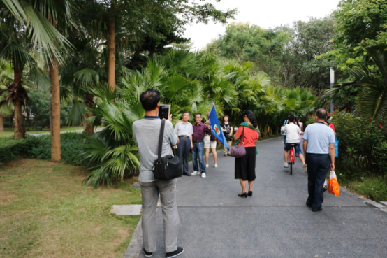 从靠近深圳湾体育馆的公园入口处缓缓东行,大家一路纷纷拍照留念、观海赏石,并参观了园区内四季如春的桑科树种小叶榕、橡胶榕、黄葛榕、高山榕;花繁叶茂的大叶紫薇、凤凰木、羊蹄甲、刺桐;婀娜多姿的棕榈科树种海南椰子、鱼尾葵、加拿利海枣、散尾葵等植物和园内众多的鸟类。